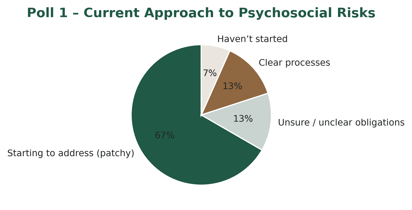 Further to our recent Something’s Changed… newsletter, we ran a few quick polls during the webinar to see where businesses are really at when it comes to managing psychosocial risks.