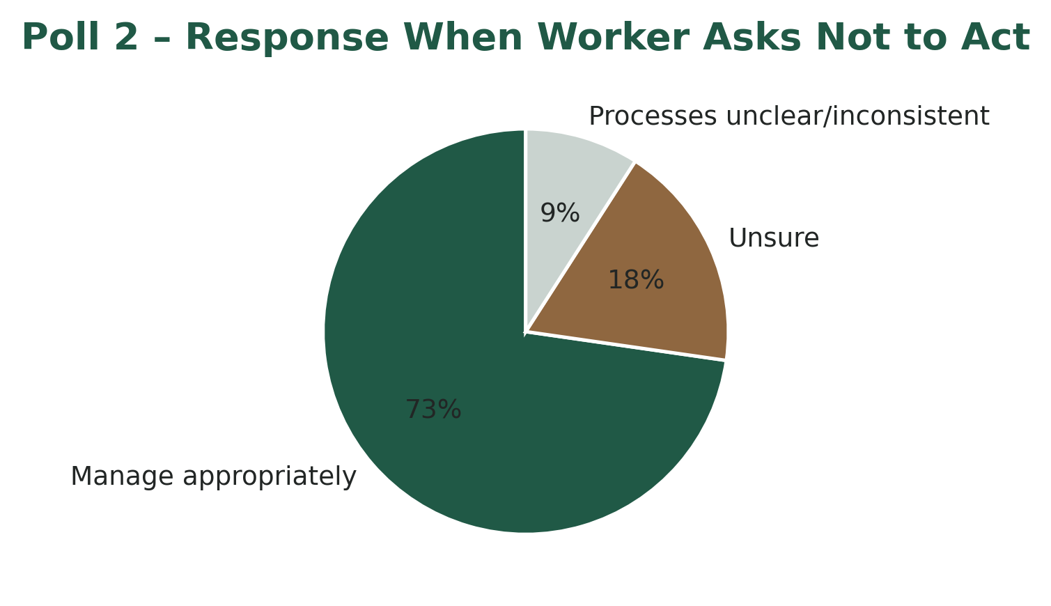 What it shows: Almost three-quarters said they would take action appropriately, even if the worker asked them not to, showing strong intent to protect psychological safety. However, nearly one in four respondents were unsure or said their processes were inconsistent.